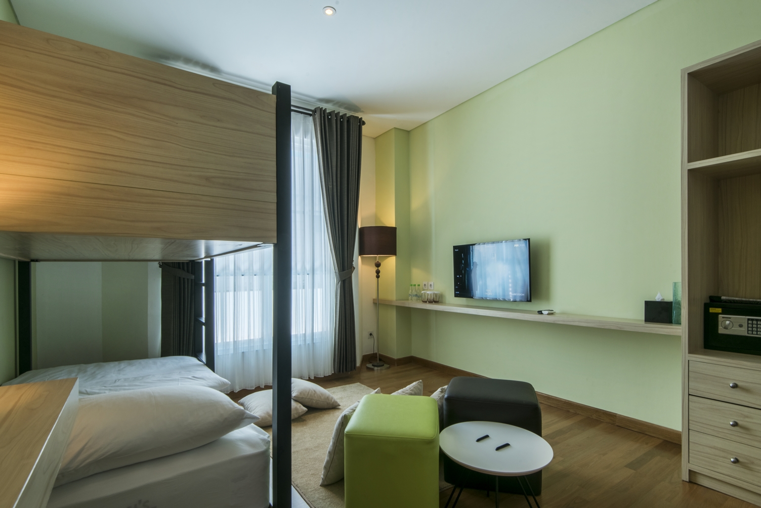 Coffee/Tea maker, AC, Telephone, 40” flat screen TV, cable TV channel, wardrobe, safe deposit box, laundry bag, slipper, toiletries, bathroom w/ shower, hot/cold water, amenities, towel, non-smoking room, Wifi, turndown service